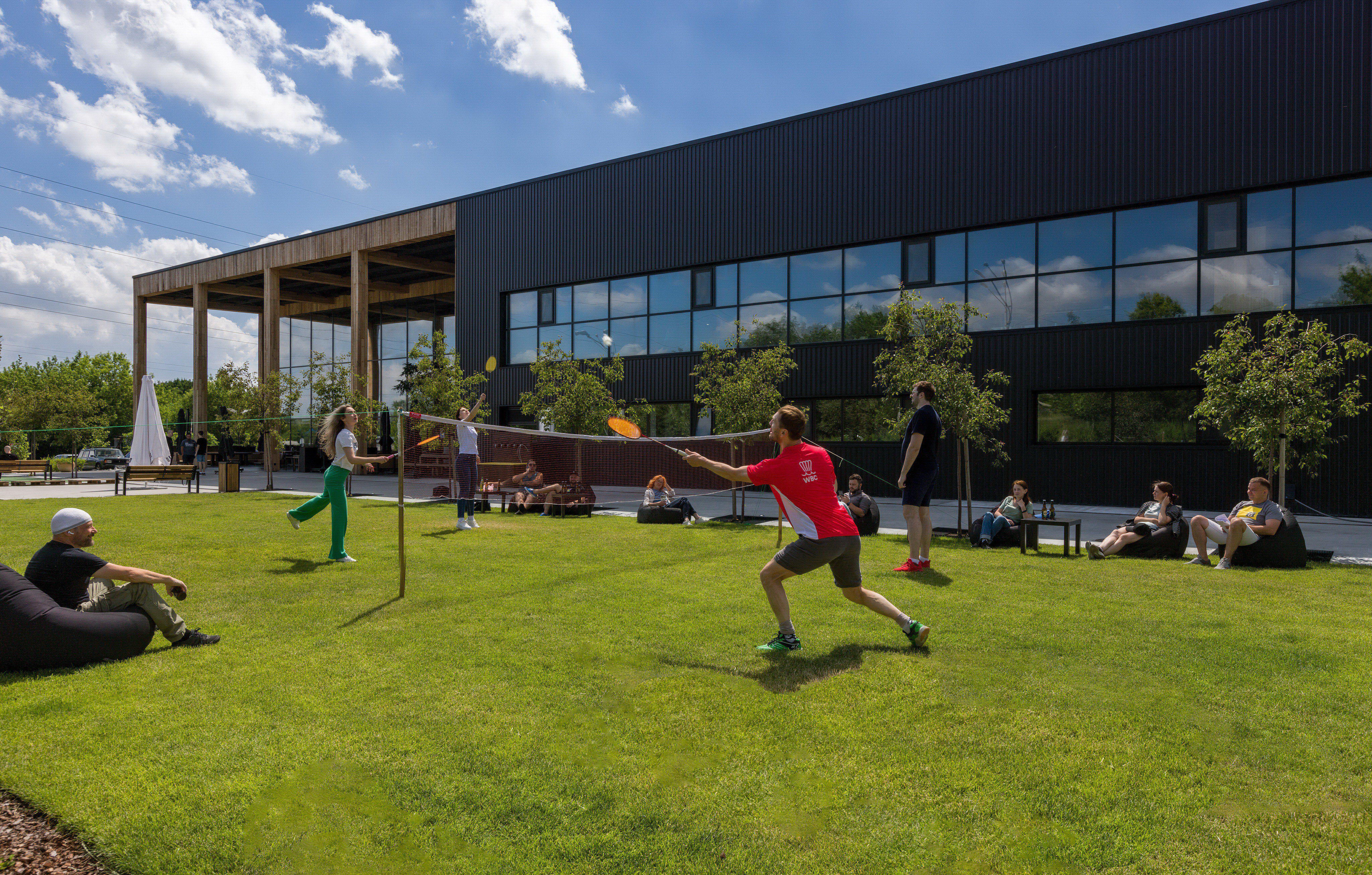 MOVA Brewery is a story of industrial heritage revival in Dnipro, where an abandoned Soviet-era factory was transformed into a contemporary multifunctional hub with a brewery, restaurant, offices, and a landscaped public realm. The project redefines the post-industrial identity of the city, creating a vibrant destination for the community and a catalyst for the development of an industrial park. The architectural concept balances memory and modernity. The original steel frame and precast reinforced concrete structures were preserved, while local materials such as steel, glass, and wood were applied to emphasize a brutal yet functional aesthetic. Decorative finishes were deliberately avoided in favor of authenticity and durability. Compact building volumes with optimal daylighting and dynamic solar protection ensure energy efficiency, while open layouts allow the space to adapt easily to new functions. Landscape played a crucial role in reconnecting the site to its natural surroundings. Native planting, carefully integrated pedestrian links, and unexpected green interventions softened the industrial setting and shaped an inviting urban atmosphere. The public spaces around MOVA became a point of attraction not only for visitors but also for the city’s wider community. Sustainability is at the core of the project. Among the key technologies are heat pumps, a solar power station, a solid-fuel steam generator for heating and production, as well as heat recovery systems for public spaces and brewing processes, including re-use of pre-heated water. A ventilated façade system and additional insulation exceeding local standards by 30% further reduce energy demand. MOVA demonstrates how a sustainable approach can unite industrial heritage with contemporary technology and ecological responsibility. More than a brewery, it is a cultural and architectural landmark that exemplifies resilience, adaptability, and community-driven transformation in Ukraine’s urban landscape.