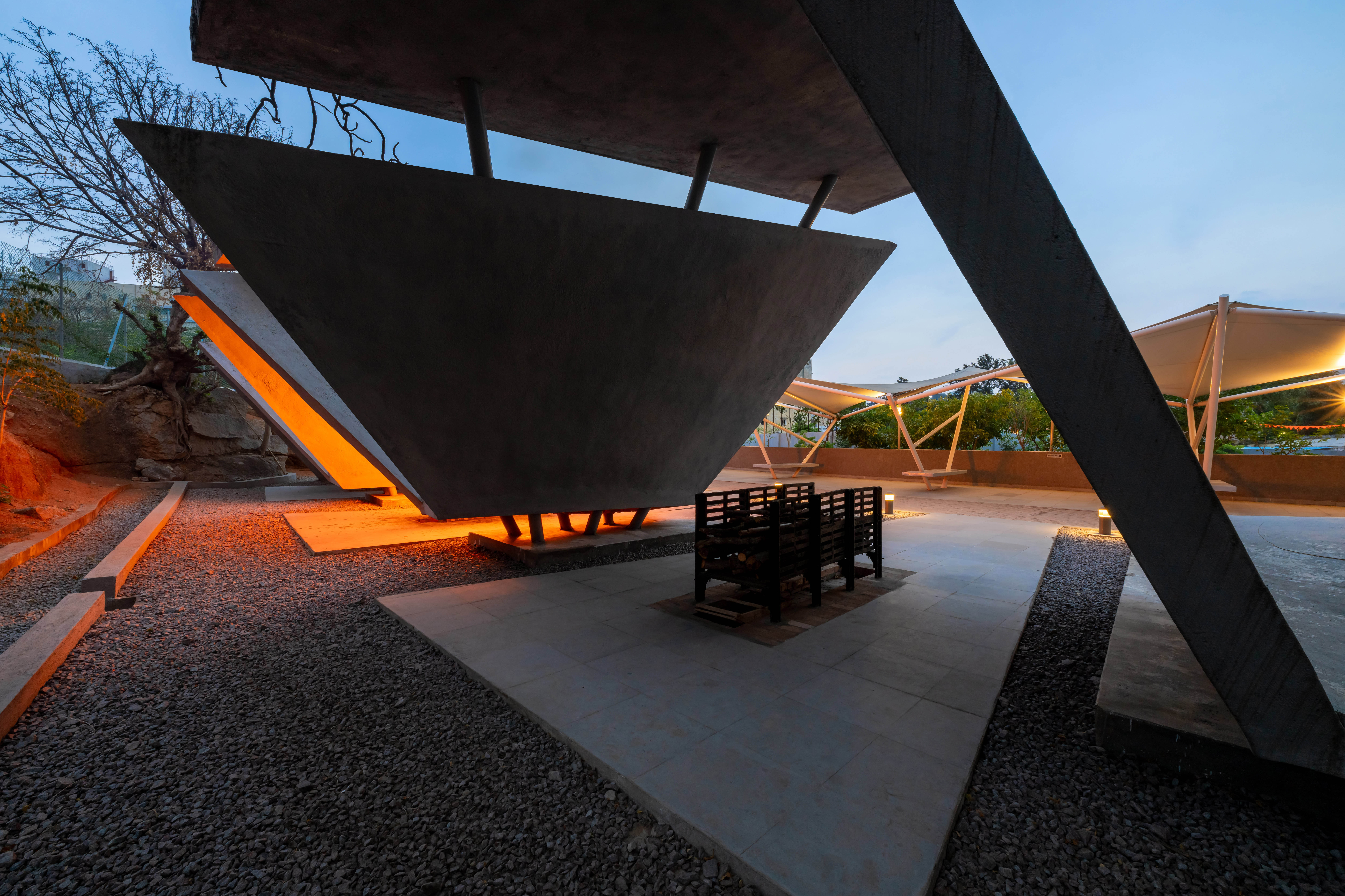 INTENTION [the context] Very deep in the hustle of city noises, one need a space to relive, express and eventually walk the acceptance of loss. A relatively empty pocket of land was allotted to dedicate to a possibly quite seclusion; as expected to be able to express one’s sorrow and grief in privacy. SIGNIFICATION [the presence] A cluster of planes form portals of cremation pyres. To be able to engage the living, to help relive memories, to help move on, to let go, to accept death; the 'Vaikuntha Mahaprasthanam' is a Hindu Crematorium that symbolises a doorway, an archway, a passageway, a threshold of departure into the higher realms of life & living, of soul & self. MANIFESTATION [the FORM itself] 1 [PYRE] Planes forming portals; angling of the walls are protective and supportive, whilst they create a passage for peaceful passing of the deceased. The architecture of the crematorium formally is very fragile looking- as if it were in need of support. Very like a human being who’s lost someone; but only under such adverse conditions does an individual’s strength surfaces, hence the structure is a cluster of forms giving strength to each other. All in all a symbolic representation of the shouldering the burden as a family weighed down by the sorrow of losing someone close. 2 [WAITING AREA] Membranes of the waiting area help form a mnemonic screen of recollections, reminiscence, flashbacks and so on. The twisted feeling of lost and losing one’s bearings followed by grief and initial shock is represented in the form of the waiting area structure.