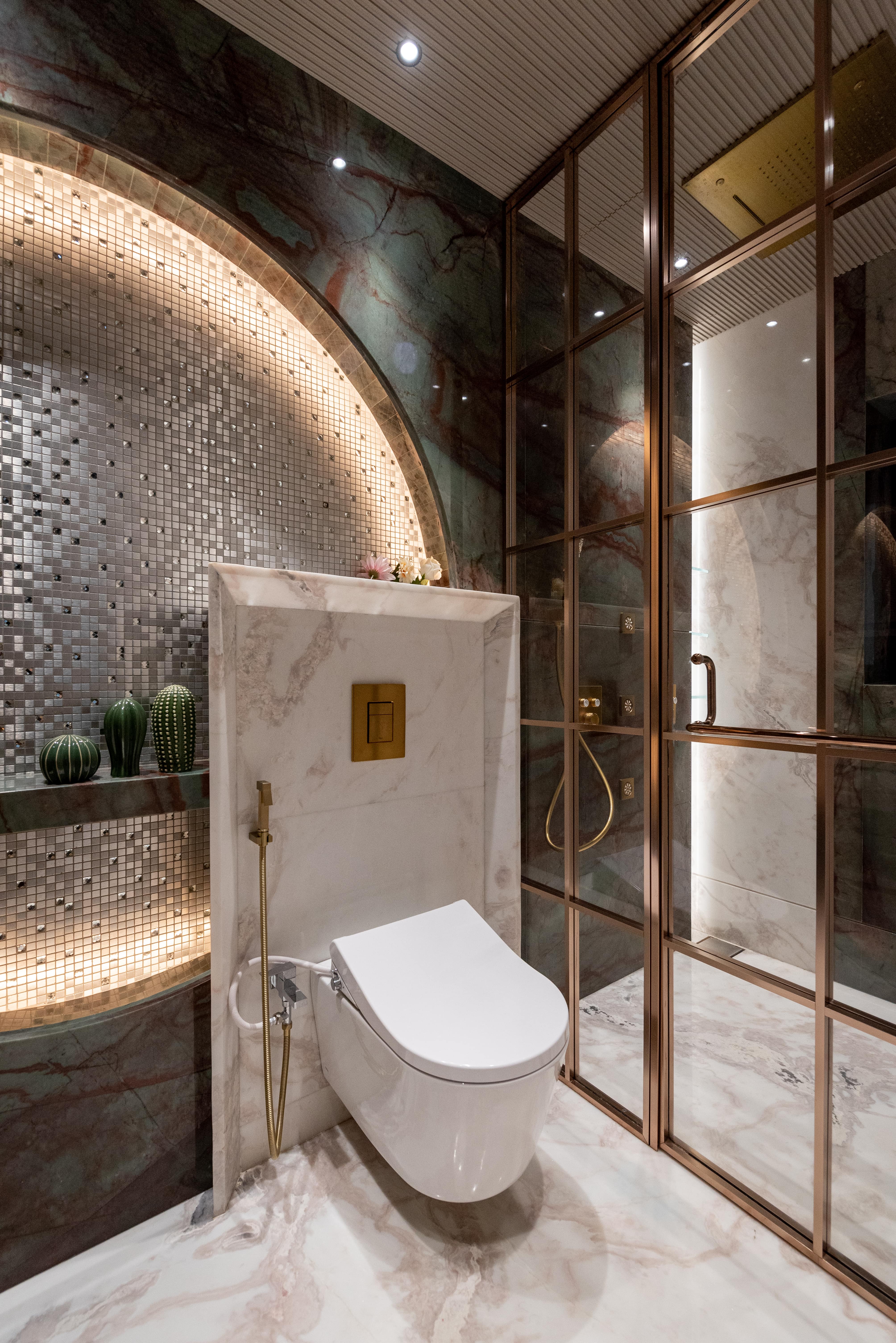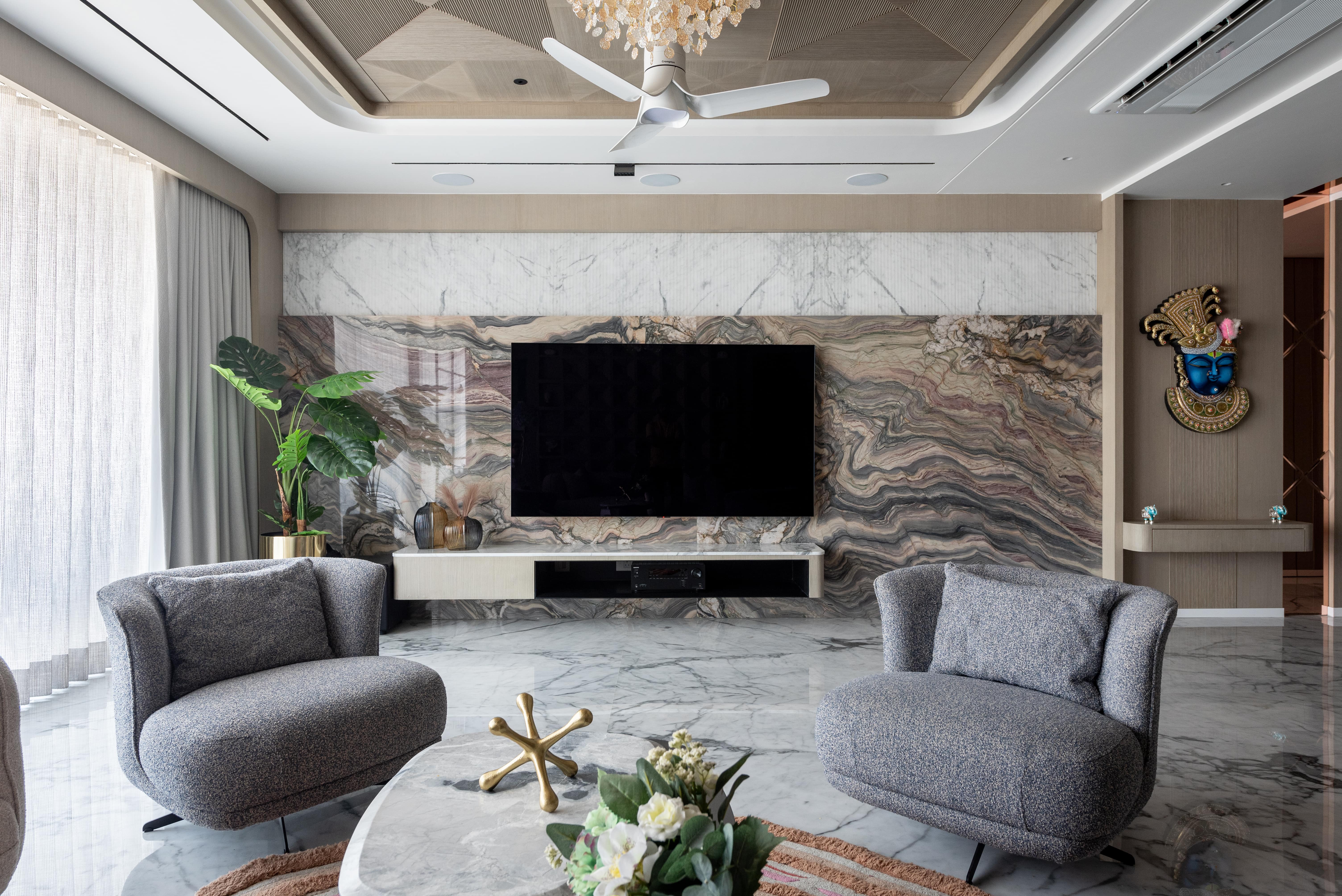 When a longtime client returned with the brief to create something “unforgettable,” GroupARC envisioned a residence that redefines domestic luxury through craftsmanship and material exploration. Spanning 2,200 sq.ft. in suburban Mumbai, the home was designed in tandem with the son’s wedding—demanding a duality of expression: festive in spirit yet timeless in character. Natural stone forms the project’s backbone, explored not just as surface but as a medium of detail. Italian Statuario marble transitions from polished expanses across the floor to hand-carved fluted bands in the living room niche, each 6mm groove painstakingly finished on site. The same interplay of plain and fluted textures extends into the powder bath. A single veneer shade carries this dual language forward, expressed in smooth and ribbed planes to create subtle rhythm and continuity. Private spaces adopt distinct moods within this framework. The son’s suite breaks away from stone and veneer, emerging as an ethereal “white mahal” defined by textured paint and sheer drapery, while other bedrooms highlight unique stone accents and crafted details. Bathrooms are conceived as wellness chambers, each distinguished by singular stones and immersive fittings that elevate daily rituals. Designed around a moment of cultural significance, the house balances festive exuberance with enduring calm. It is as much about orchestrating mood through light, texture, and materiality as it is about creating architectural order. What emerges is a residence crafted with the precision of a couturier and the sensitivity of an artist—contemporary, celebratory, and profoundly personal. 27 Oberoi Enigma is less a residence and more a statement: of craft, of continuity, and of the belief that true luxury is born from authenticity of material and intensity of detail.