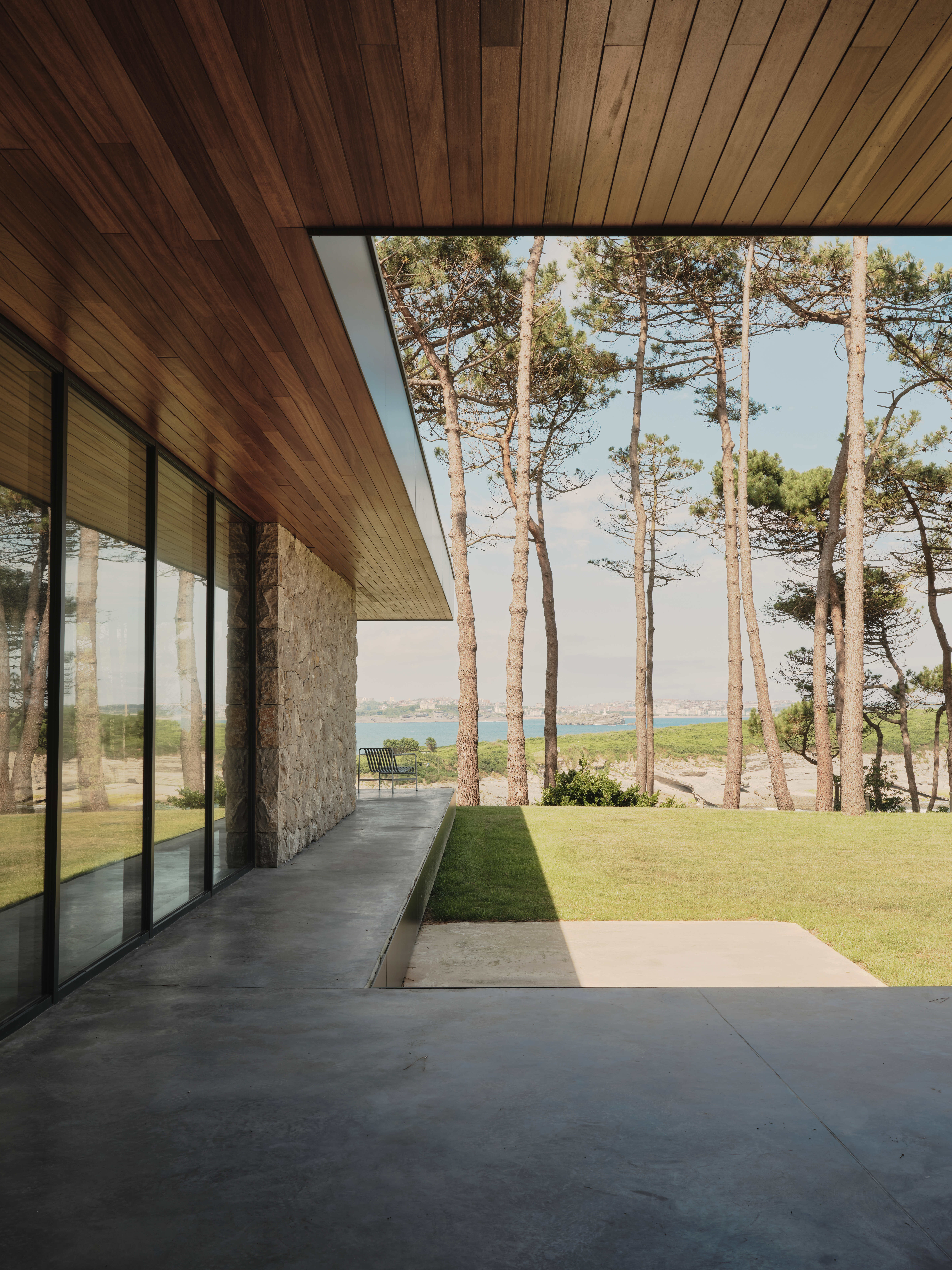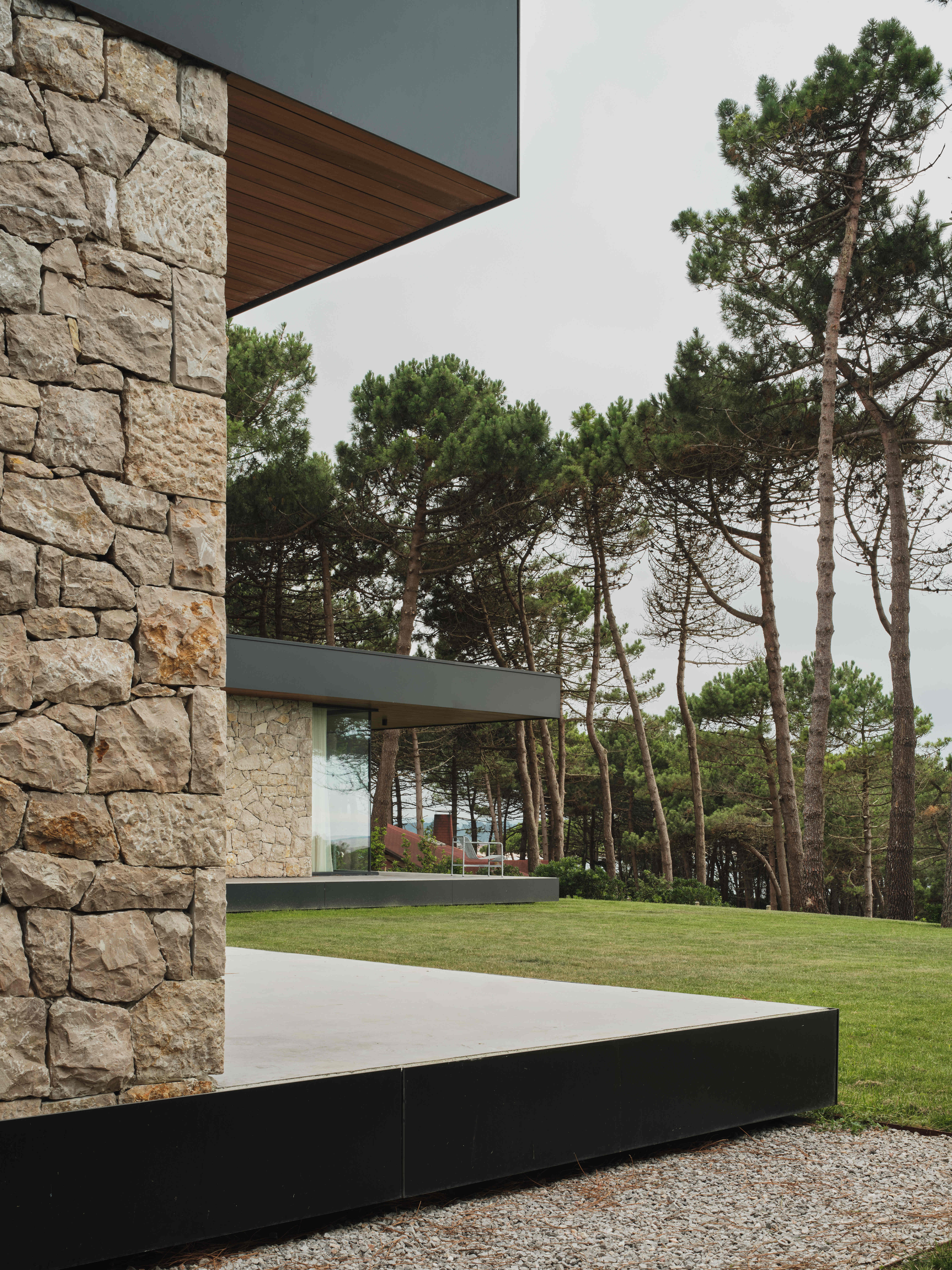 Located in the Cantabrian town that gives it its name, Casa Loredo is part of the New Vernacular Architecture of the Cantabrian (NAVC) series, a design research initiative that reinterprets the region’s traditional building techniques through a contemporary lens. Set on an elongated plot overlooking the Cantabrian Sea, surrounded by pines and holm oaks, the house enjoys a privileged position with open views towards the northwest, where the bay of Santander appears in the distance. Conceived as a grand lookout, the project seeks a constant dialogue with the landscape through large glazed openings that dissolve the boundary between interior and exterior. Materiality plays a central role in defining the architectural language. Handcrafted limestone masonry shapes the façade, evoking the purity and authenticity of local tradition. Wood, used in ceilings and structural details, adds warmth and continuity, emphasizing the home’s orientation towards the sea. The structure alternates reinforced concrete shear walls with glass panels, creating a dynamic balance between solidity and transparency. The design responds to the region’s demanding climate, characterized by strong winds and heavy rain, through patios, porches, and overhangs that protect the interior and create sheltered transition spaces. The L-shaped floor plan organizes the house into two wings: the east–west wing contains the main living areas and master bedroom, while the north–south wing accommodates guest rooms. Casa Loredo embodies the coexistence of tradition and modernity. It proposes an architecture deeply rooted in place, respectful of its cultural and environmental context, while offering a contemporary response to the ways of living in northern Spain.