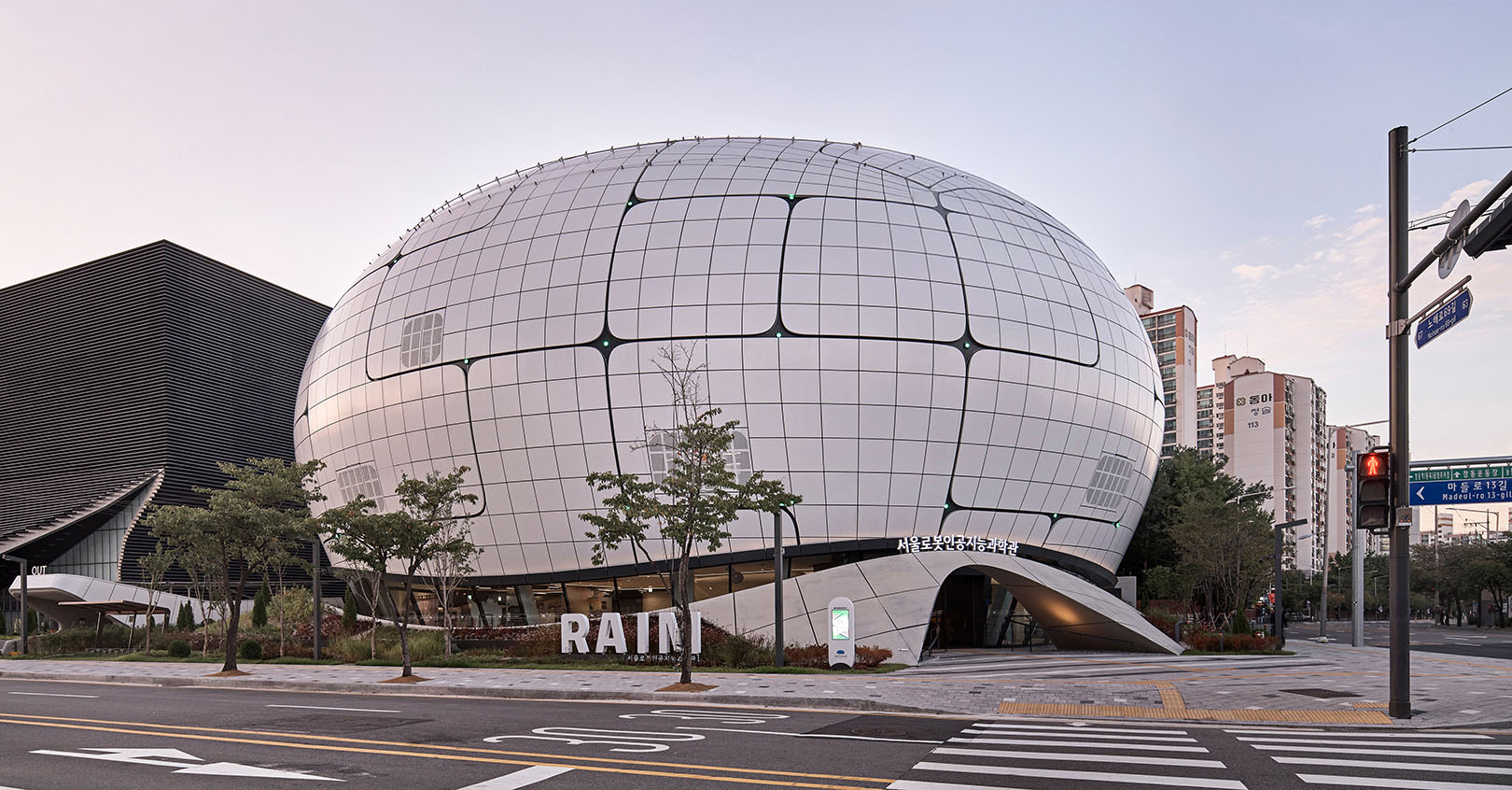 MAA-MELIKE ALTINISIK ARCHITECTS ‘s international competition winning project ‘Seoul Robot & AI Museum’ (RAIM) has officially opened to the public in Seoul, South Korea. World’s first pioneer Robot & AI Museum, RAIM emerges as a pioneering cultural landmark that will serve as a base for the 4th industrial revolution in the northeastern part of Seoul. The project realized in collaboration between MAA and WITHWORKS Architects & Engineers from 2019 to 2024, exemplifies cutting-edge architectural and construction methodologies. MAA’s architectural manifesto for RAIM articulates a distinctive design language that leverages smart design and construction methodologies to create an immersive universe for robots, AI technologies, and visitors. The museum’s spherical, non-directional form is characterized by fluid, organic shapes that resonate with the advanced technologies housed within. This dialogue between contemporary architectural expression and technological innovation forms the foundation of RAIM's design philosophy. The architectural form of RAIM is not merely an envelope but an integral part of the museum’s narrative, reflecting the fluidity and dynamism of the AI and robotics fields. The building’s design fosters an ongoing interaction between its innovative form and the groundbreaking technologies it showcases. RAIM is more than a museum; it is a symbol of the future of architecture, science, and technology in Korea. It embodies the potential of robotics and AI to redefine our built environment, serving as a landmark for Korea's 4th Industrial Revolution. As an architectural and cultural icon, RAIM will play a critical role in shaping the discourse around the integration of smart technologies into our daily lives, offering a space for reflection on the ethical and humanistic implications of these advancements.