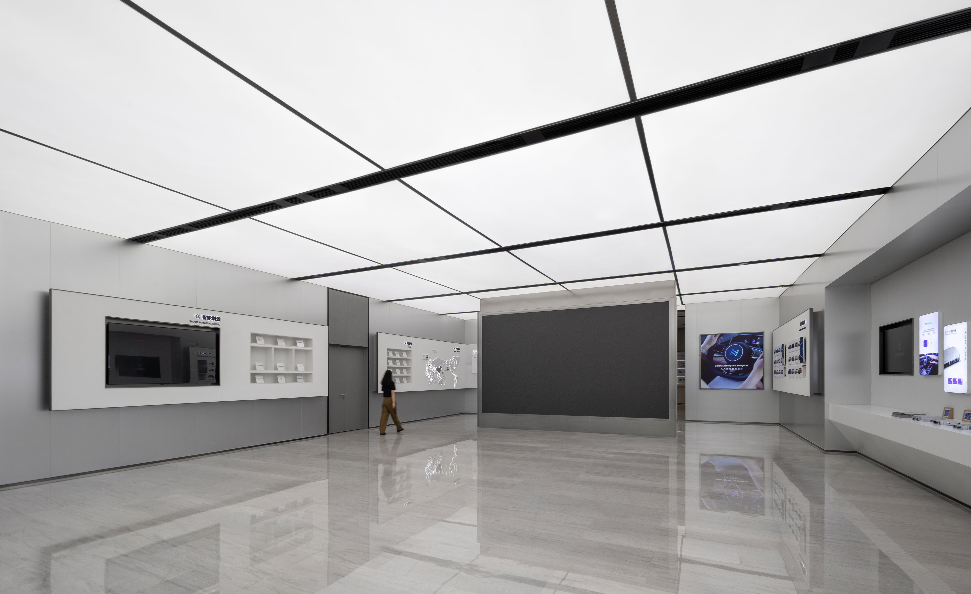 iMotion Technology (01274.HK) is a technology-driven enterprise distinguished by its advanced autonomous driving algorithms and outstanding integrated software-hardware capabilities. The company’s global headquarters is located on the banks of the Wusong River in Suzhou Industrial Park, with a total construction area of approximately 72,000 square meters. Among them, the 6,068-square-meter Cultural Center encompasses a digital exhibition hall, café, business reception area, library, and gym. The space planning and interior design were undertaken by Patton CMC, with the goal of enriching corporate culture and inspiring greater internal motivation among employees. The design fully leverages the building’s generous ceiling heights and riverside location to create an open and light-filled cultural environment. Public spaces are concentrated in the atrium areas between the 1st–3rd floors and 11th–13th floors. During the design consultation process, Patton CMC avoided superficial visual displays, instead allowing the brand’s DNA to naturally permeate both visitor and employee experiences. The digital exhibition hall, located on the northwest side of the first floor, features a luminous ceiling and marble flooring that together evoke a clean, high-tech atmosphere. The café, characterized by wood-grain aluminum panels complemented with greenery and warm lighting, offers a cozy and inviting “third space.” The leisure center on the second floor integrates reading, fitness, and psychological wellness functions, clearly separating active and quiet zones while maintaining spatial coherence, enhancing employees’ sense of happiness and belonging. The entire third floor serves as a business reception area, where a walnut wood palette creates a composed and elegant tone. The wine and cigar bar uses diverse materials to convey a refined business experience, while the Chinese private dining rooms emphasize privacy and acoustic comfort, with focused lighting that accentuates the presentation of cuisine and fosters a sophisticated dining ambiance.